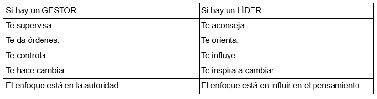 Si te consideras un gerente, es posible que, sin darte cuenta, te estés confundiendo tanto a ti mismo como a tu personal sobre cuál es realmente tu trabajo. Como hemos dicho, el lenguaje es importante. Echa un vistazo a esta tabla que expone la diferencia entre «gestionar» y «liderar».
